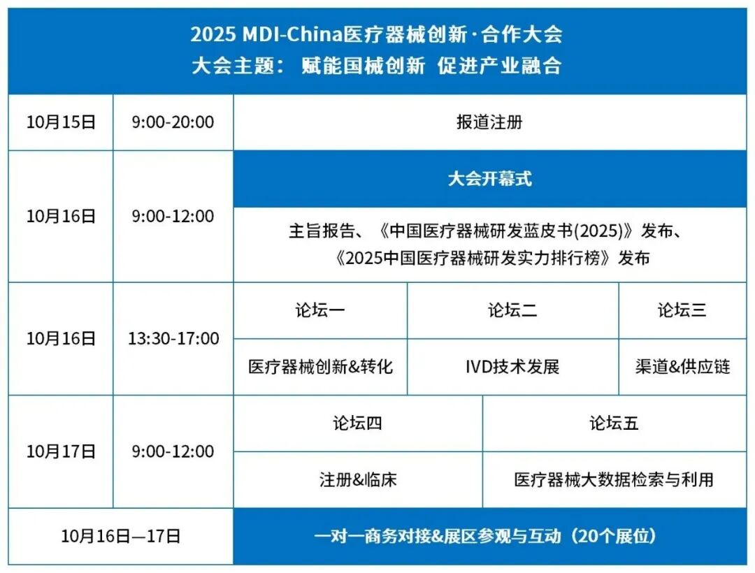 【重慶】翔康醫(yī)學(xué)邀您參加2025MDI-China醫(yī)療器械創(chuàng)新·合作大會(huì)發(fā)表時(shí)間:2025-10-13 09:43 ![]() 在生物醫(yī)藥產(chǎn)業(yè)快速發(fā)展的背景下,過去十年間,醫(yī)療器械領(lǐng)域保持了年均超過15%的增長速率,已成為當(dāng)前最具發(fā)展前景的行業(yè)之一。然而,創(chuàng)新技術(shù)如何高效落地、優(yōu)質(zhì)資源如何優(yōu)化配置、產(chǎn)業(yè)鏈上下游如何實(shí)現(xiàn)有效協(xié)同,仍是當(dāng)前需要深入探討的關(guān)鍵問題。 為促進(jìn)醫(yī)療器械行業(yè)的創(chuàng)新與資源整合,加強(qiáng)產(chǎn)學(xué)研醫(yī)各方之間的協(xié)作,在由中國醫(yī)療器械行業(yè)協(xié)會(huì)指導(dǎo),藥智網(wǎng)、《中國醫(yī)療設(shè)備》雜志社與重慶郵電大學(xué)共同主辦的“2025MDI-China醫(yī)療器械創(chuàng)新·合作大會(huì)”將于2025年10月16日至17日在重慶召開。 翔康醫(yī)學(xué)將參與本次大會(huì),并在會(huì)場設(shè)置展位(展位號(hào):A06)。此外,翔康醫(yī)學(xué)副總經(jīng)理張軍先生將進(jìn)行題為《如何快速完成臨床評(píng)價(jià)和臨床試驗(yàn)》的專題報(bào)告。我們誠摯邀請(qǐng)您蒞臨翔康醫(yī)學(xué)展位,期待以我們專業(yè)的CRO/CDMO服務(wù),助力您的創(chuàng)新醫(yī)療器械項(xiàng)目從概念階段走向全球市場。 ![]()